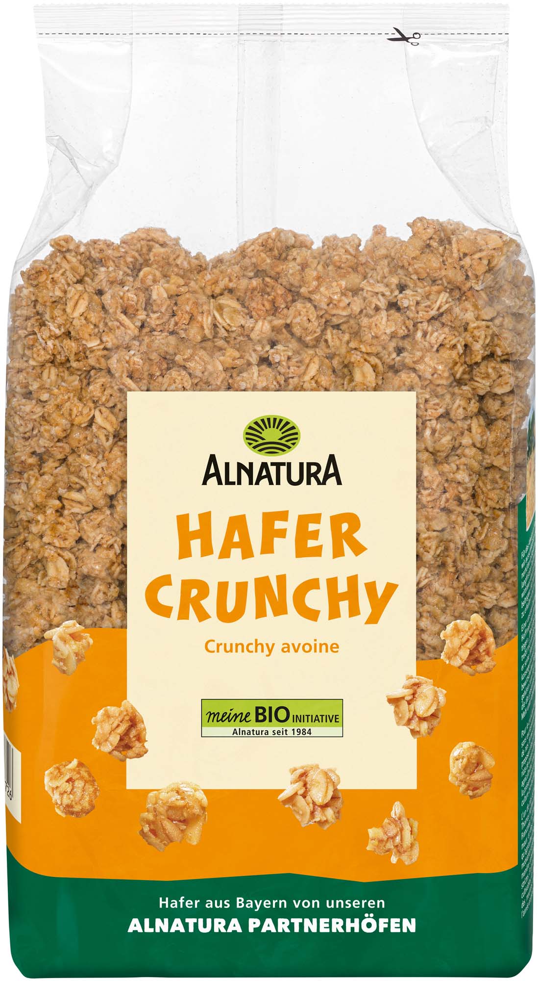 Ein Knuspergenuss fürs Frühstück oder zwischendurch: Dieses Bio-Crunchy ist eine kross gebackene Müslispezialität aus Hafer- und Weizenvollkornflocken, Kokosraspel geben eine dezent exotische Note. So schmeckt das Alnatura Hafer-Crunchy mit Milch, Joghurt und Co. und ist auch pur geknabbert ein abwechslungsreicher Snack. Der Hafer für das vegane Crunchy stammt aus Bayern von Alnatura Partnerhöfen.