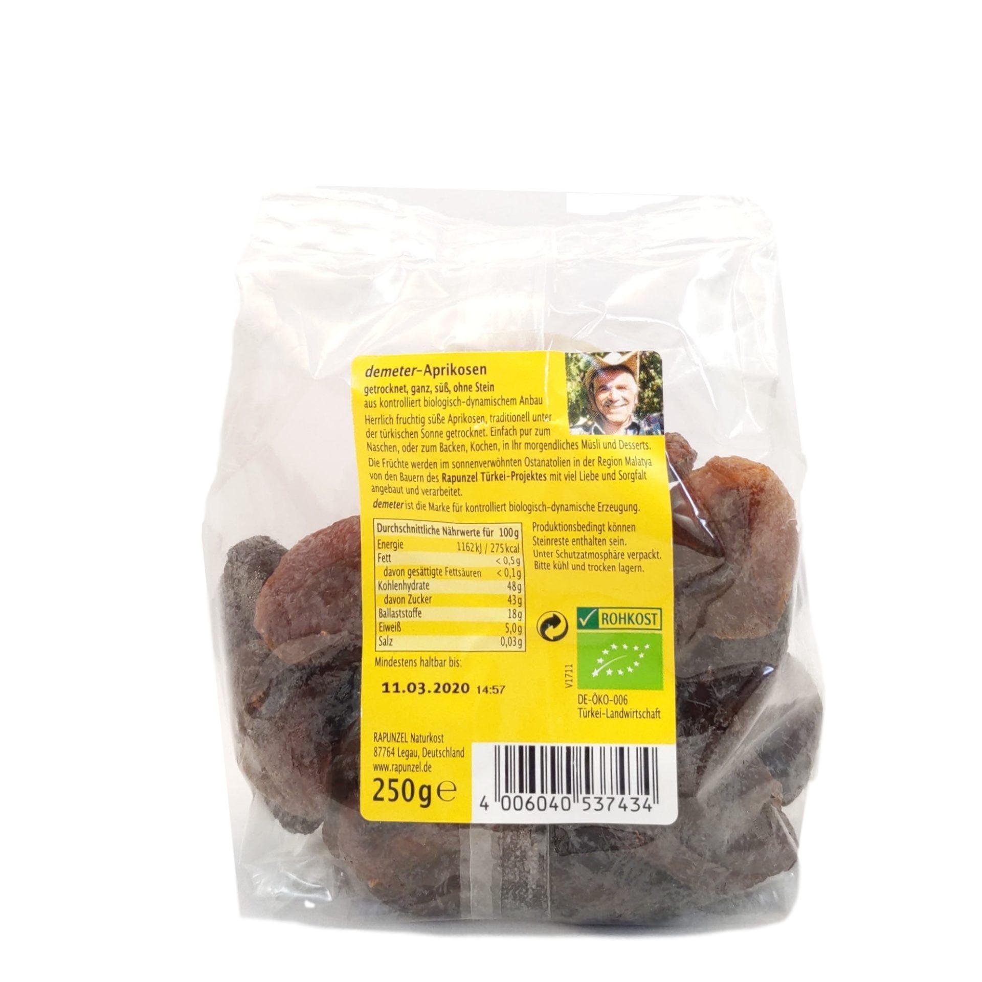 Sonnengereifte, herrlich süße, demeter Aprikosen aus dem Rapunzel Türkei-Projekt. Die Früchte werden in der Gegend von Malatya in Ostanatolien geerntet und getrocknet. Sie sind ungeschwefelt und behalten so ihre natürlich orange-braune Farbe und das volle Aroma.