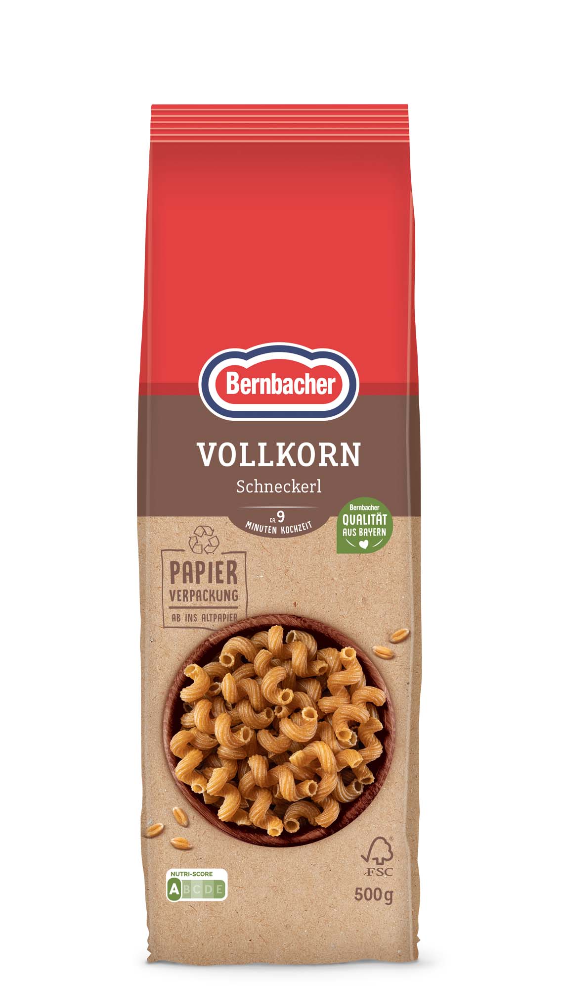 Bernbacher Vollkorn Schneckerl bringen dank Mineralien und Ballaststoffe Energie auf den Teller. Fein nussig im Geschmack aktivieren sie zum Variieren klassischer Nudelgerichte sowie Kombinieren mit Gemüse und Pilzen. Die kompakten Vollkorn Schneckerl lassen sich auch in Nudelsalaten und Eintöpfen gut auf den Löffel nehmen.