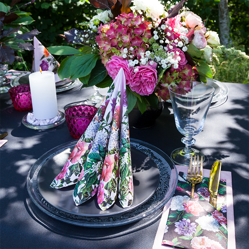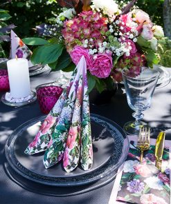 Erleben Sie die kunstvolle Eleganz der „Bloom“-Servietten. Ideal für jede Gelegenheit mit satten Blütenfarben und stabiler Qualität.
