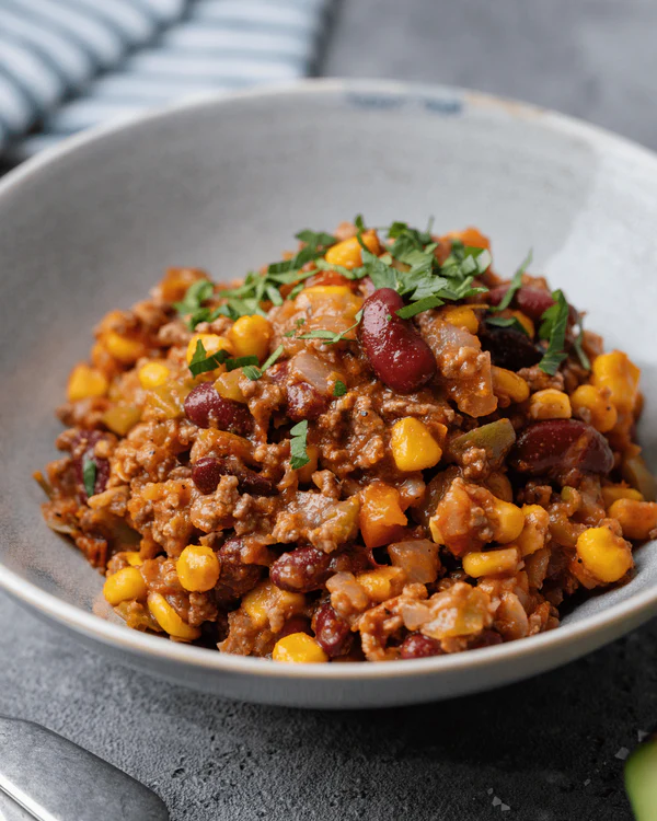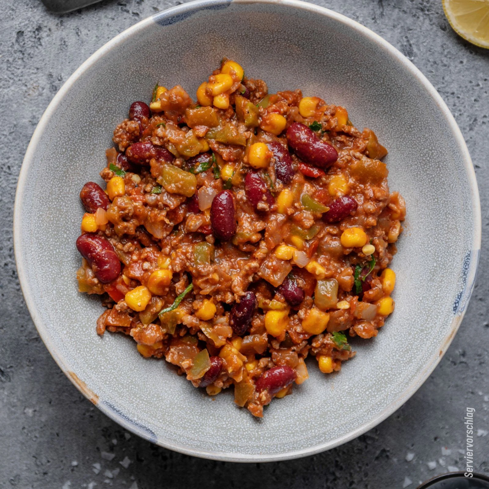 Der Klassiker unter den Hackfleischgerichten. Rinderhack in einer Sauce aus Bohnen, Mais und einer Chili-tomaten-Würzmischung stillen deinen Hunger und sorgen für einen guten Geschmack