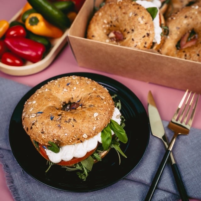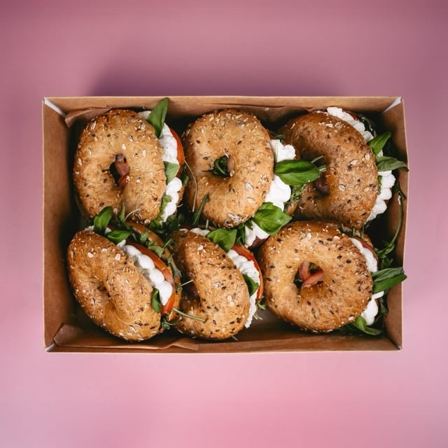 6x Vollkornbagel mit Frischkäse, Rucola, Tomate und Basilikum (a,f,g,k)