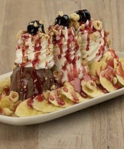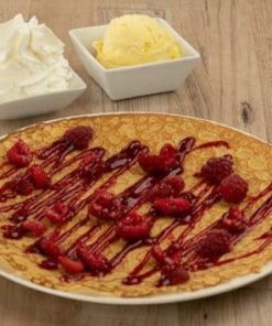 Karamell, Nutella, Sahnekaramellwürfel, frische Crêpe, Puderzucker, Vanilleeis, Schlagsahne NCVF