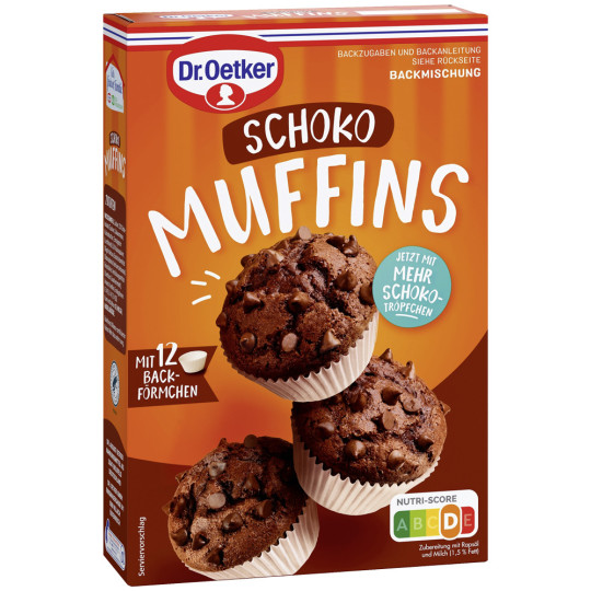 Muffins für alle, die Schokolade lieben: Herrlich saftig und schokoladig mit extra vielen Schokoladen-Tropfen! Als Kleine Back-Idee von Dr. Oetker sind die Muffins einfach und schnell herzustellen. Die Backmischung enthält neben der Teigmischung und den Schokoladen-Tropfen bereits die Backförmchen für 12 leckere Muffins.