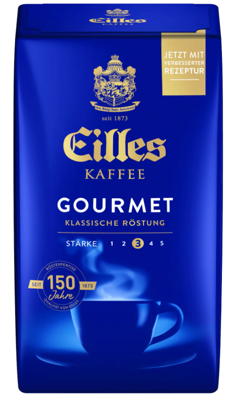 Aus feinsten Kaffeesorten bester Provenienzen komponiert, gehört Eilles Gourmet-Kaffee seit über 130 Jahren zu Deutschlands großen Traditionsmarken. Einer der berühmtesten Liebhaber von Eilles Gourmet-Kaffee war Bayernkönig Ludwig II. , an dessen Hof Eilles Kaffee zur bevorzugten Marke avancierte. Eine spezielle Veredelung verleiht Eilles Gourmet-Kaffee ganz besondere Eigenschaften: ein unverwechselbares Aroma und erlesenen Kaffee-Genuß.