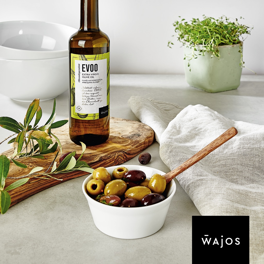 Selektiert, erlesen und besonders ist EVOO für das tägliche Kochen, der Allrounder in der Küche und das flüssige Gold für die Lieblingsspeisen. Ideal im Salatdressing, zum Verfeinern verschiedener Saucen und Marinaden.