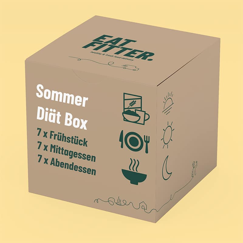 Wir haben Abnehm-Fertiggerichte kreiert, die dich bei der Gewichtsreduzierung unterstützen sollen. Zum einen, was das Abnehmen selbst angeht, und zum anderen, was die Zubereitung betrifft. Obendrauf soll dein neuer Ernährungsplan abwechslungsreich und lecker sein. Das alles verspricht unsere Sommer-Diät-Box, die du online bestellen kannst. Darin haben wir dir Gerichte für Frühstück, Mittagessen und Abendessen von Montag bis Sonntag vorbereitet.