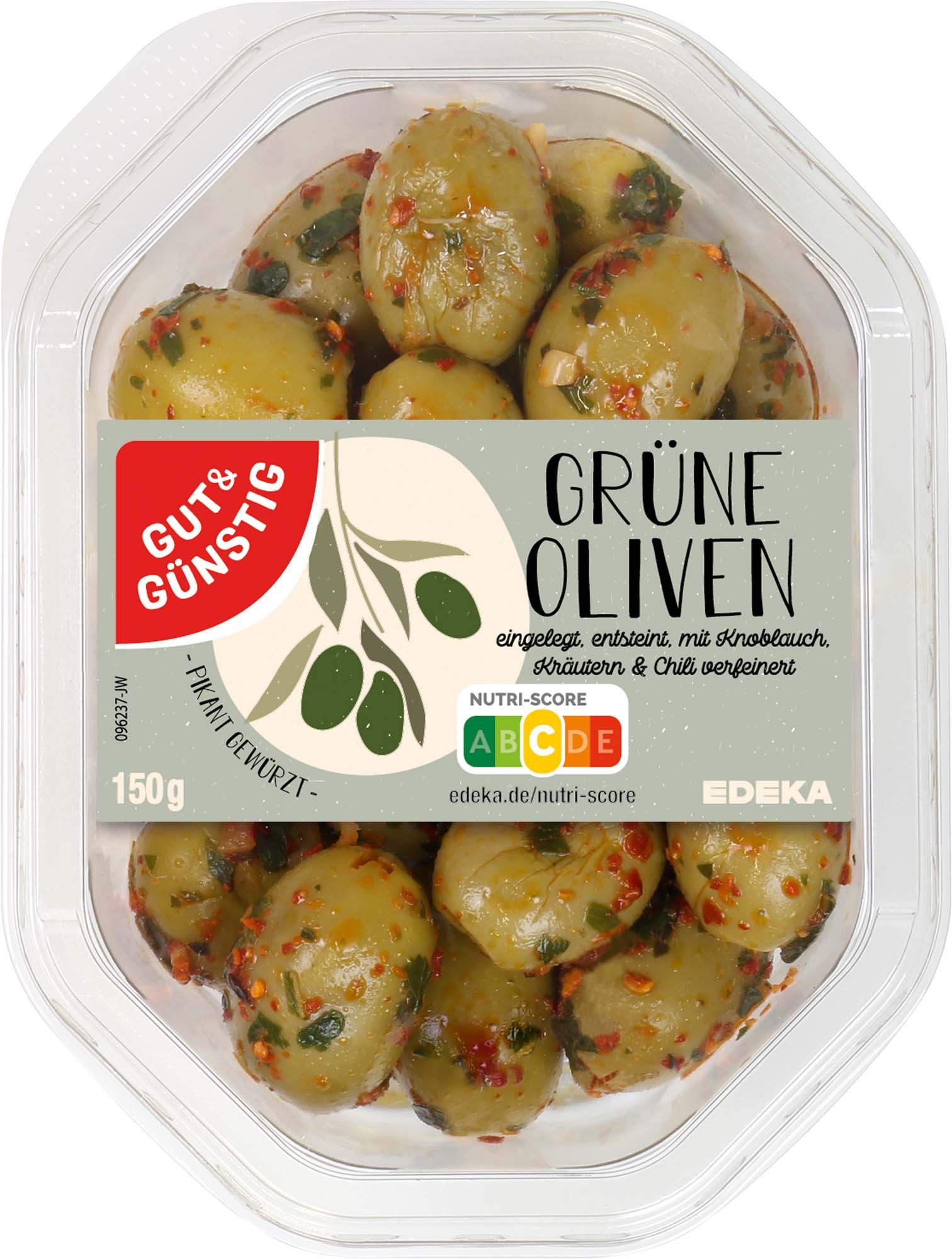 Gut & Günstig Grüne Oliven mit Kräutern und Chili 230g