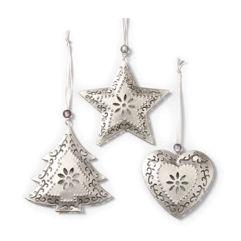 Hänger – Silber – Tannennaum, Stern, Herz – 3er Set (10 cm)