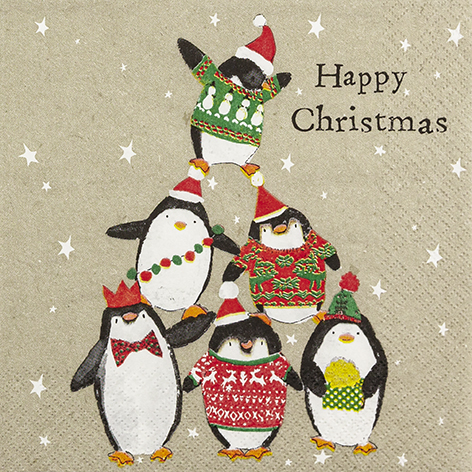 Die Happy Penguins Servietten bringen festliche Freude auf den Tisch. Perfekt für Weihnachtsfeiern und in dreilagiger Qualität für Funktion und Stil.