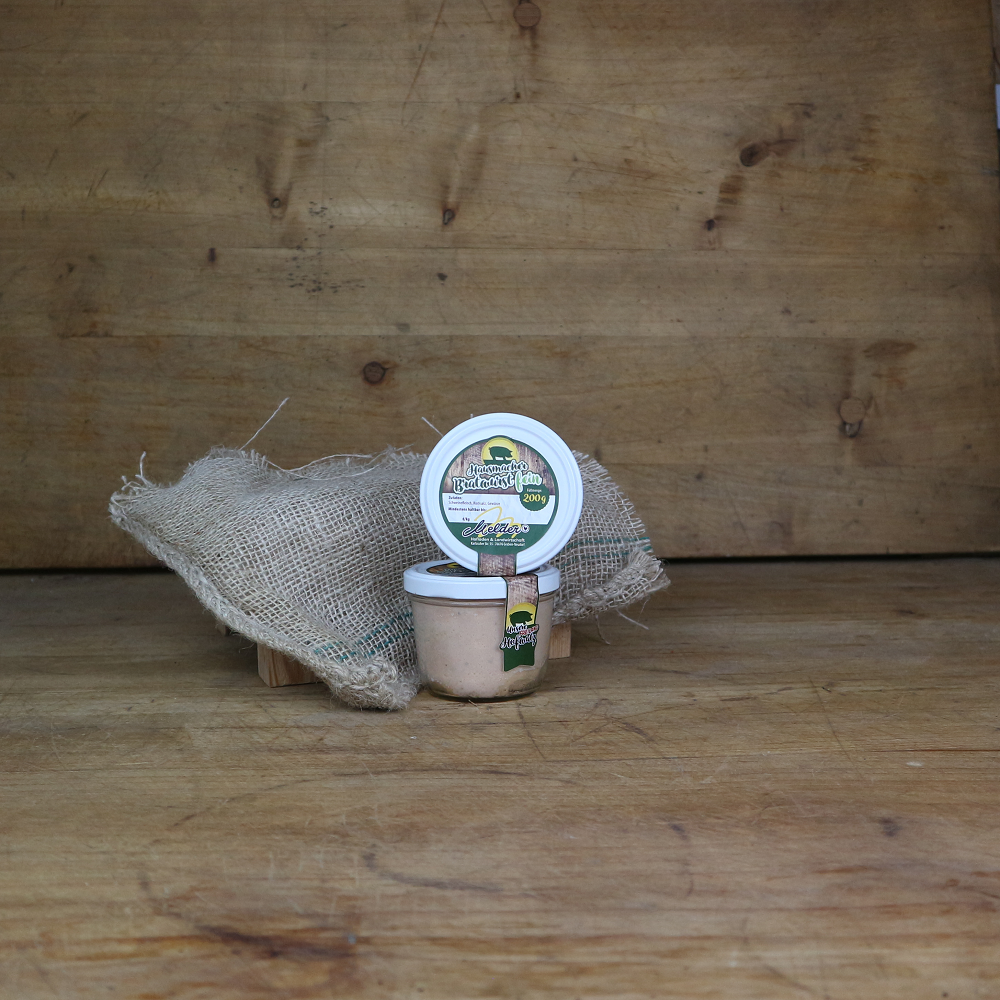 Der Ursprung der Bratwurst liegt in der Hausschlachtung. Nach traditionellem Rezept wird sie für uns von der Metzgerei Herrwerth aus unseren eigenen Freilandschweinen hergestellt. Mit ihrem deftigen Geschmack sollte sie auf keiner klassischen Vesperplatte fehlen.