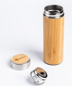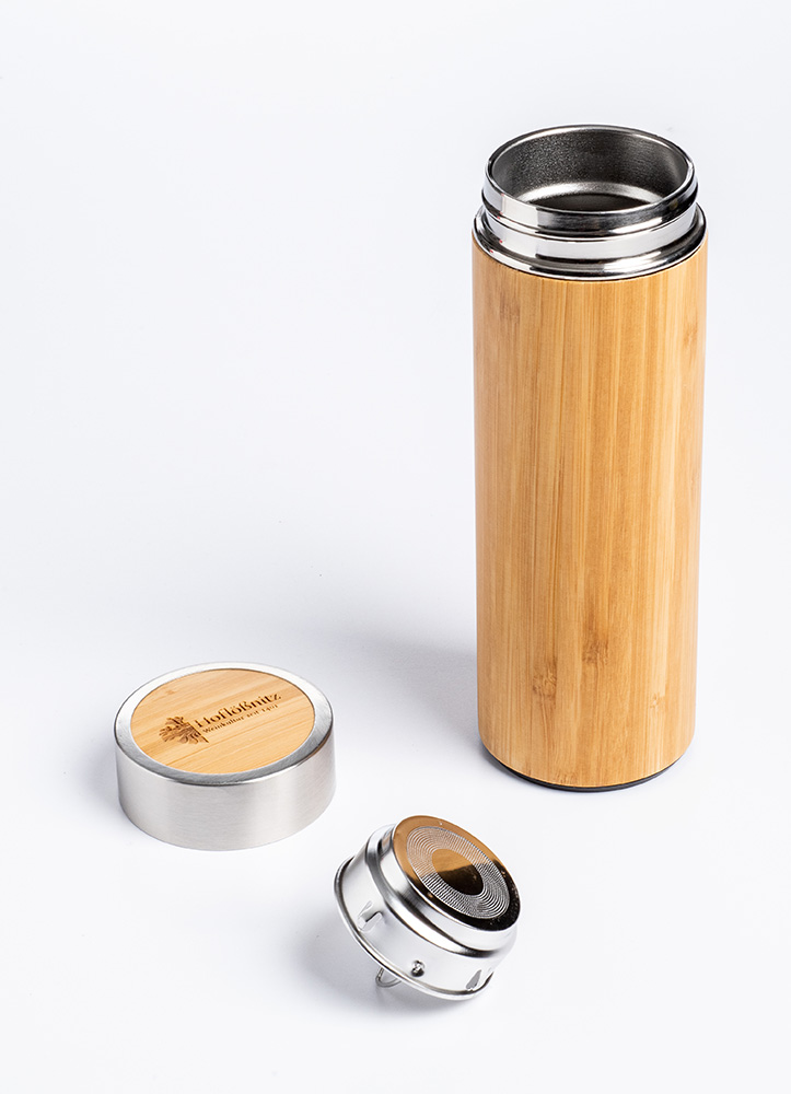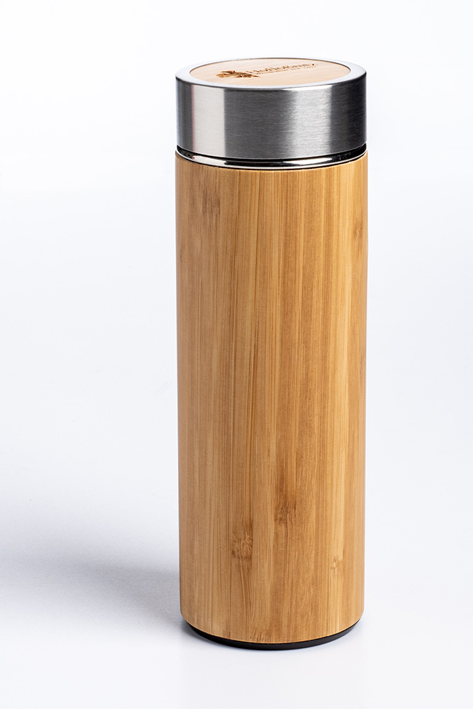 Mit uns wird es nicht kalt – für den Weg zur Arbeit, Wanderungen oder Spaziergänge der ideale Begleiter. Unser Hoflößnitz-Thermobecher besteht aus einer auslaufsicheren, vakuumisolierten Thermosflasche aus Edelstahl mit Bambus-Finish und einem Fassungsvermögen von 360 ml. Ein herausnehmbares Teesieb aus Edelstahl ist inklusive.