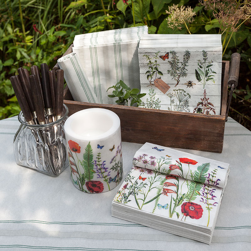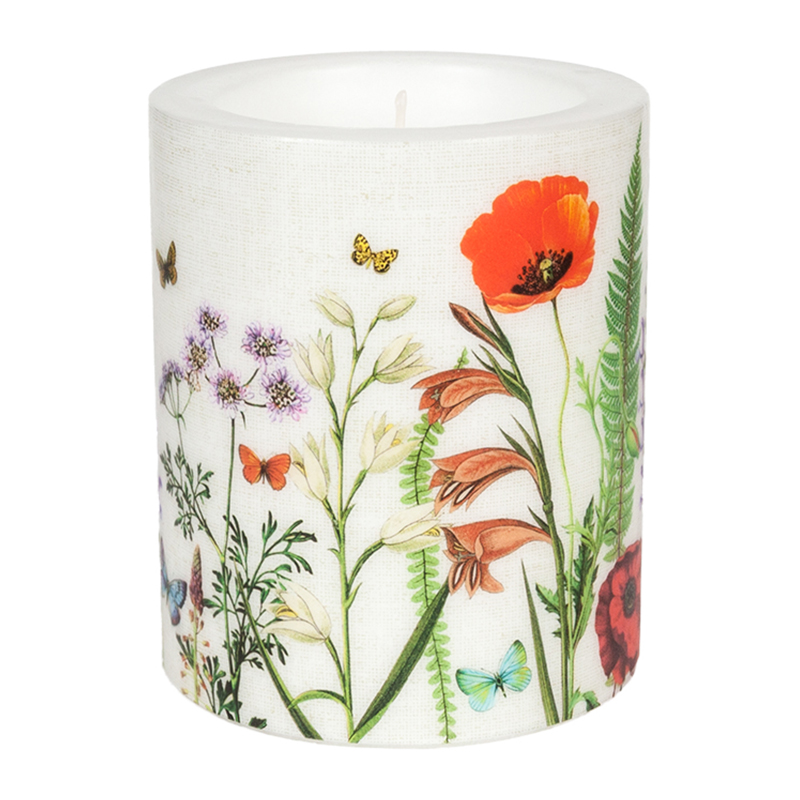 LC Meadow in Bloom Ø 99 mm Dekorkerze mit floralem Design und 60 Stunden Brenndauer, für wohltuende Frühlingsatmosphäre.