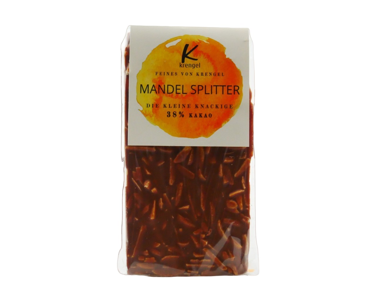 Zutaten: Mandeln, Zucker, Kakaobutter, Vollmilchpulver, Emulgator Lecithin, natürlicher Vanilleextrakt, mind. 38% Kakao