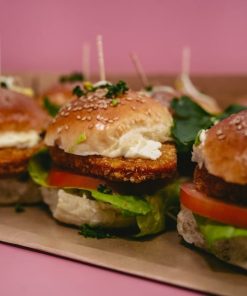 9x Mini Hähnchenschnitzel-Burger mit Romanasalat, Mangochutney und Pickles (a,c,g,j,k,l)