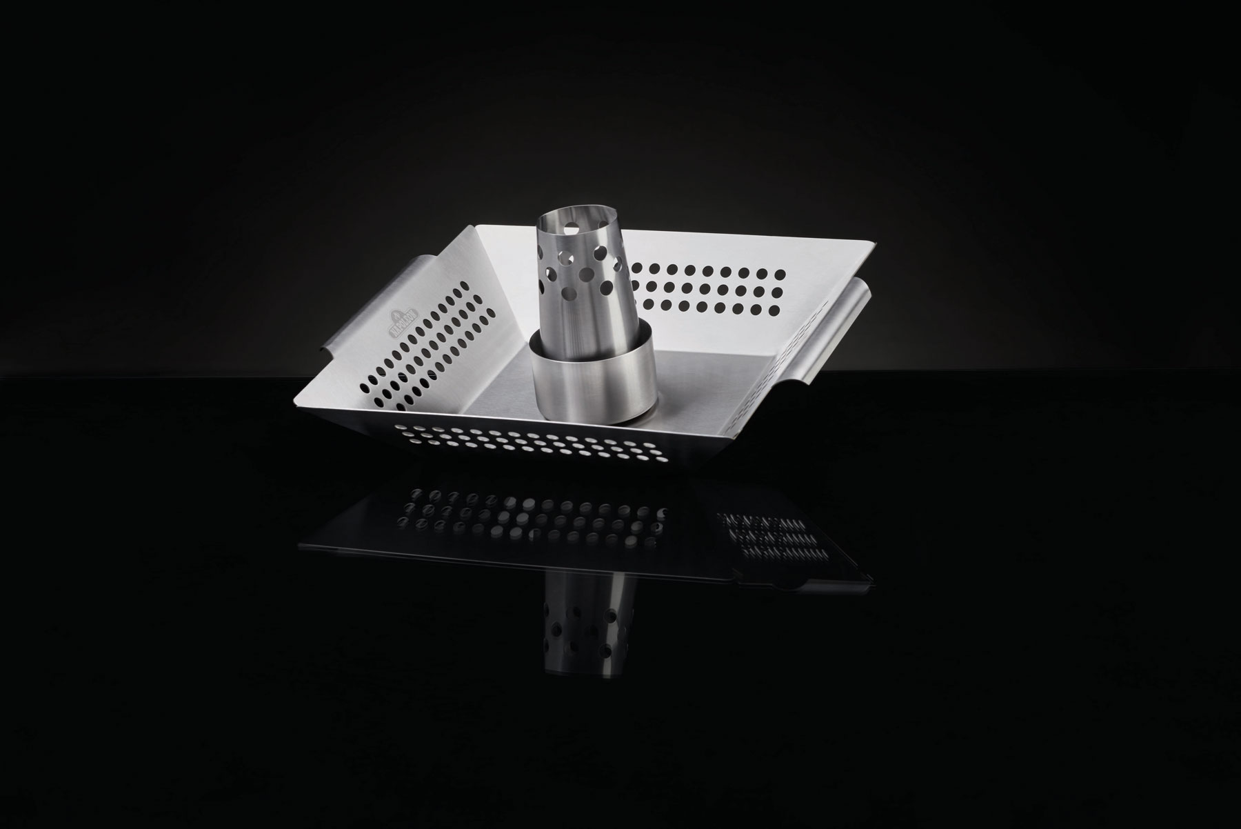 Der multifunktionale Geflügelhalter und Gemüsekorb bringt zusammen, was zusammen gehört. Am abnehmbaren Aufsatz findet das Grillhähnchen seinen Platz. Darunter, beträufelt von den intensiven Hähnchensäften und Aromen, wird das Gemüse schonend gegart. Dank seiner eckigen Grundform nutzt der Edelstahl-Geflügelhalter samt Gemüsekorb die Grillfläche optimal aus. An den seitlichen Griffen lässt er sich ganz einfach und sauber anfassen – zum Beispiel zum Verschieben aus der direkten in die indirekte Grillzone. Der praktische Grillhelfer ist 28 x 28 cm x 9 cm groß, aus Edelstahl gefertigt und für die Spülmaschine geeignet.Geflügelhalter und Wok