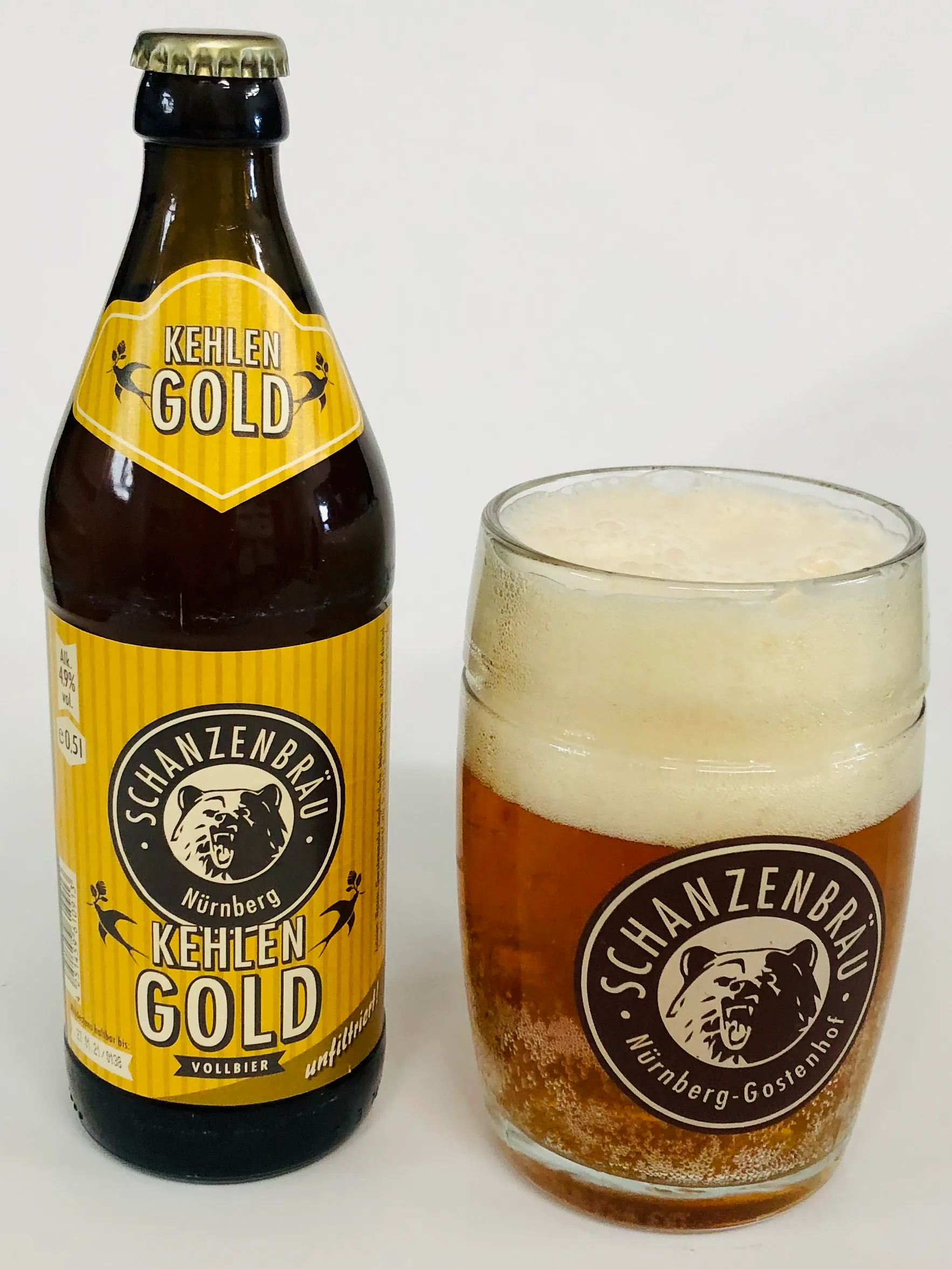 Ein fruchtig frisches Vollbier mit einem Alkoholgehalt von 4,9 % vol und 11,9 % Stammwürze. 33 IBU ( Bittereinheiten) durch die drei Hopfensorten Select, Tradition und Cascade. Malziger Körper und leicht bitterer Abgang. Wie alle Biere von der Nürnberger Schanzenbräu ist auch das Kehlengold eine unfiltrierte Bierspezilität, das macht aber genau den feinen Unterschied im Geschmack aus!