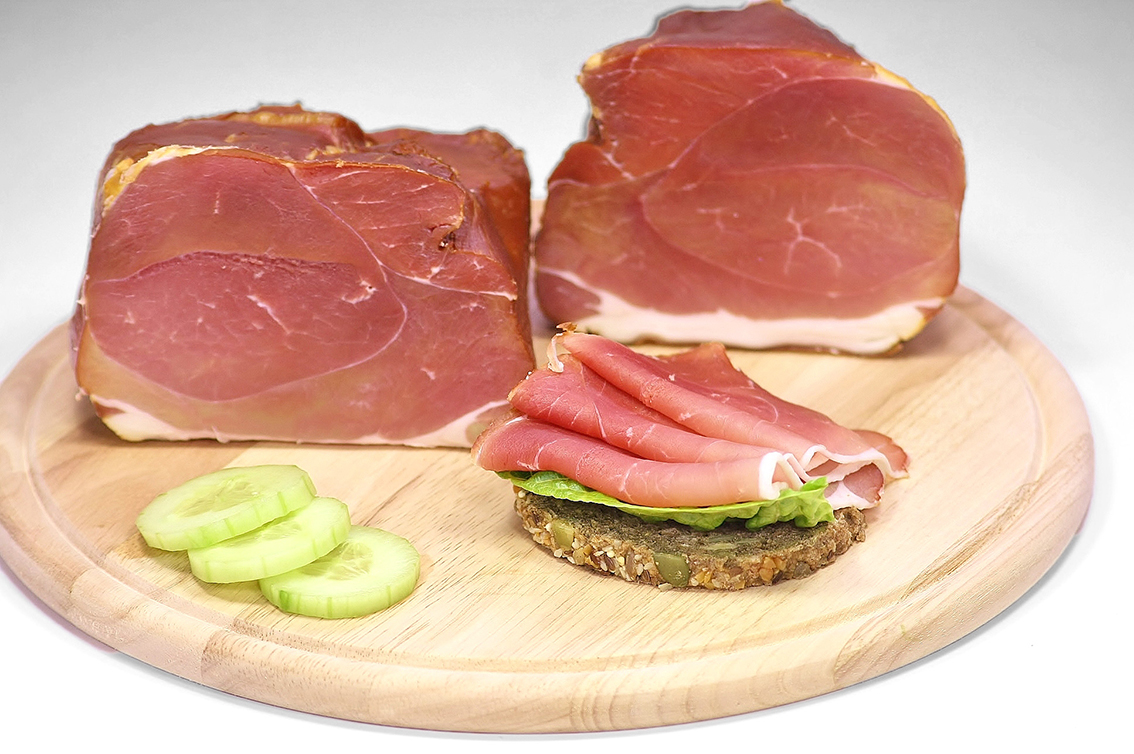 Schweinefleisch, Speisesalz, Zucker, Gewürze (mit SELLERIE), Dextrose, Aromen, Konservierungsstoff (E250), Buchenholzrauch.