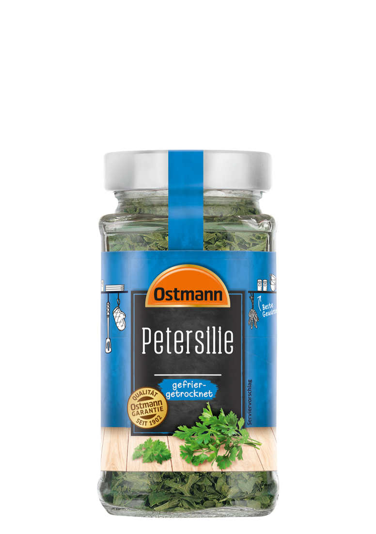 Ostmann Petersilie ist aromaschonend gefriergetrocknet. Passt zu Gemüse, Pilzen, Salaten, Dips, Saucen und Suppen. Ideal zu Geflügel, Kartoffeln, Eier- und Fischgerichten.