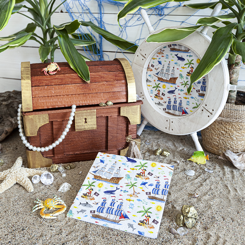 Pirates Servietten – Perfekt für Partys und Events mit maritimem Touch. Setzen Sie Akzente mit unserem hochwertigen dreilagigen Tissue in lebendigem Design. Packung enthält 20 Servietten.