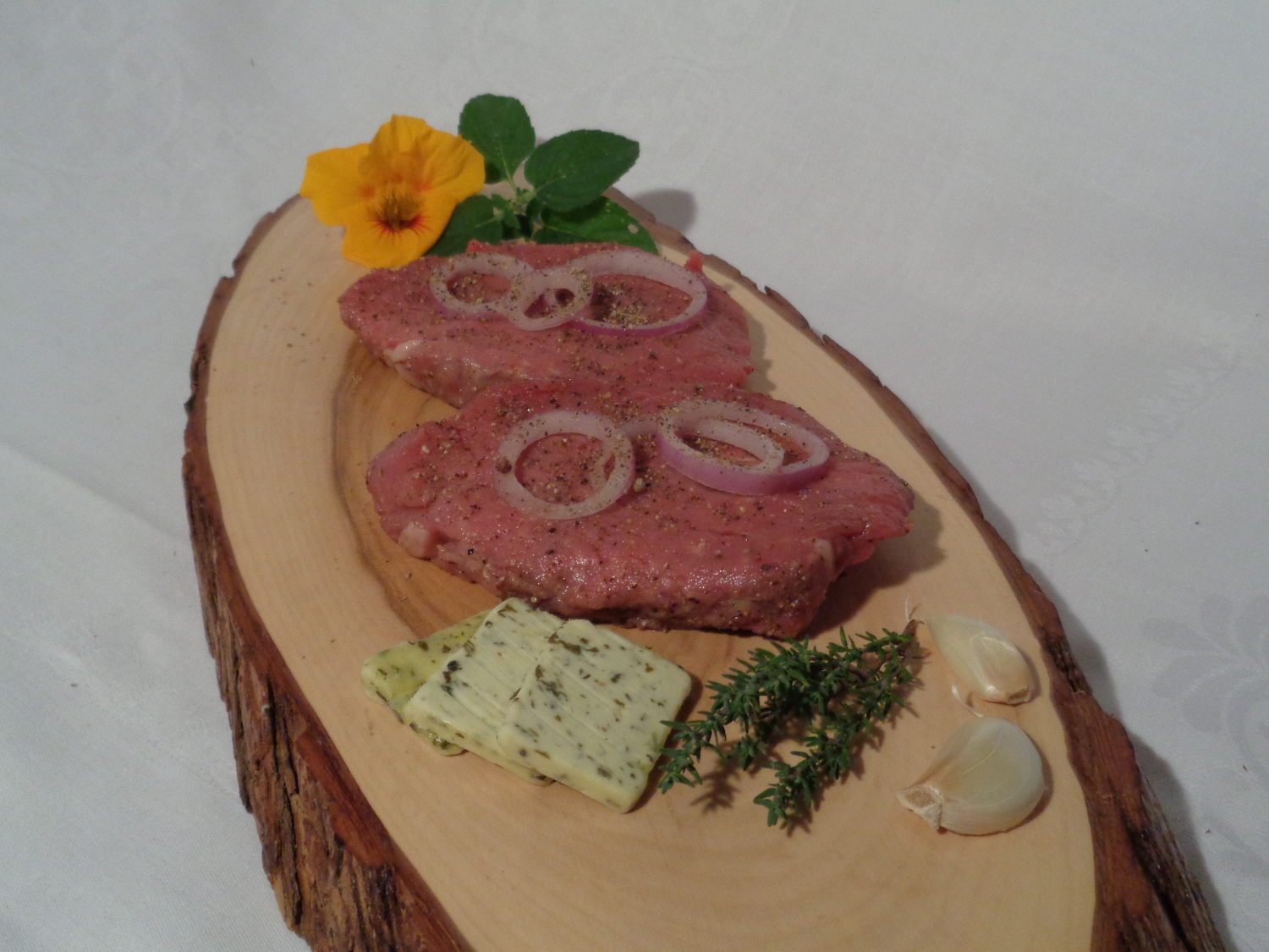 Zarte Steaks, circa 3 cm dick, geschnitten aus dem Rinderfilet. Eingelegt und gewürzt, fix und fertig zum Kurzbraten.