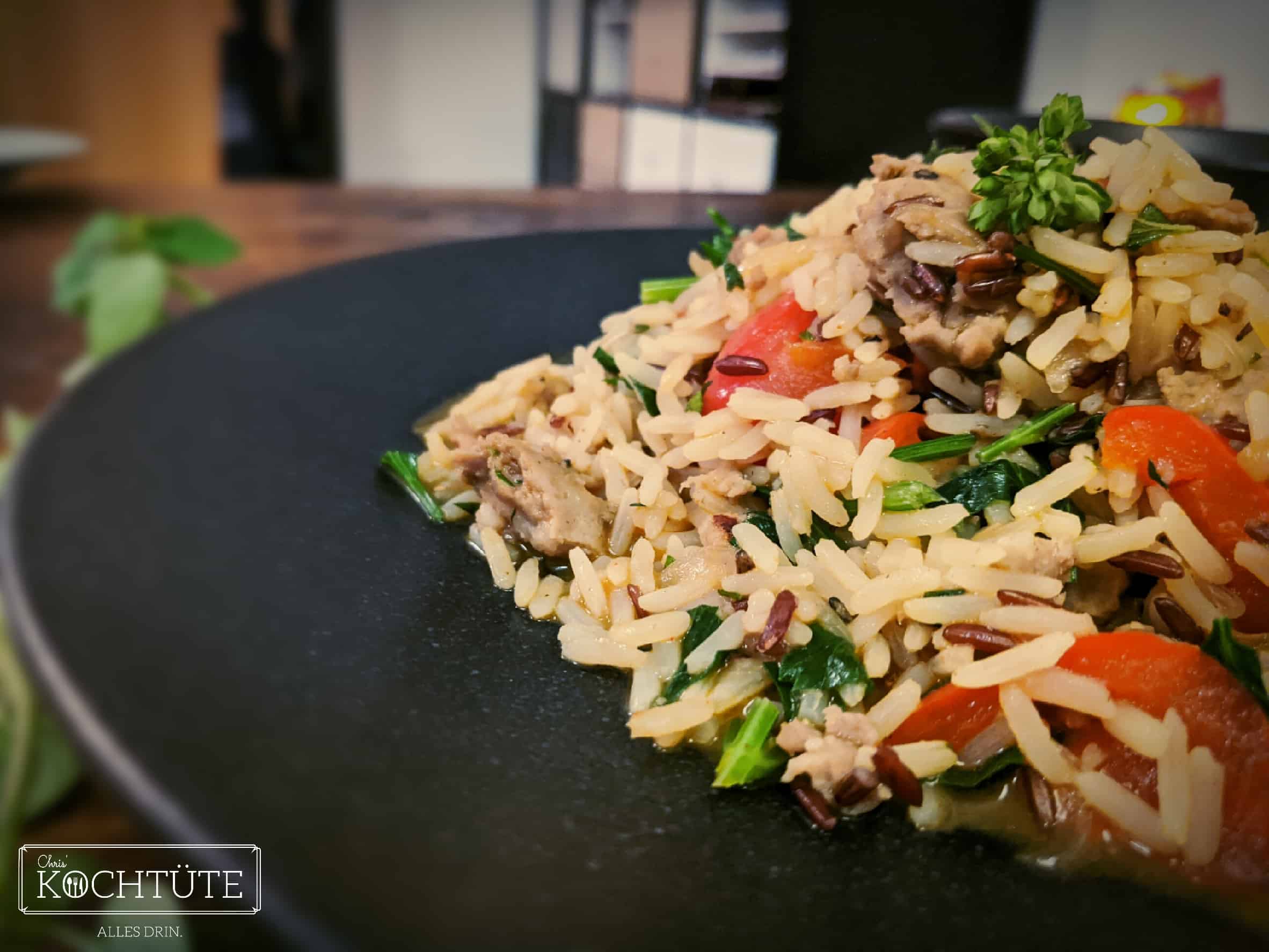 Salsiccia-Wildreis-Pfanne mit frischem Oregano