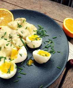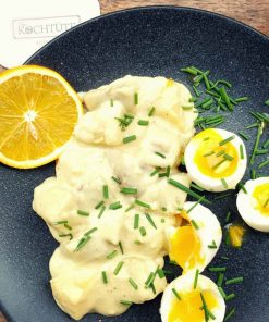 Nährwerte (pro Portion): Kalorien: 513 kcal, Kohlenhydrate: 44,7g, Eiweiß: 18,3g, Fett: 27,5g