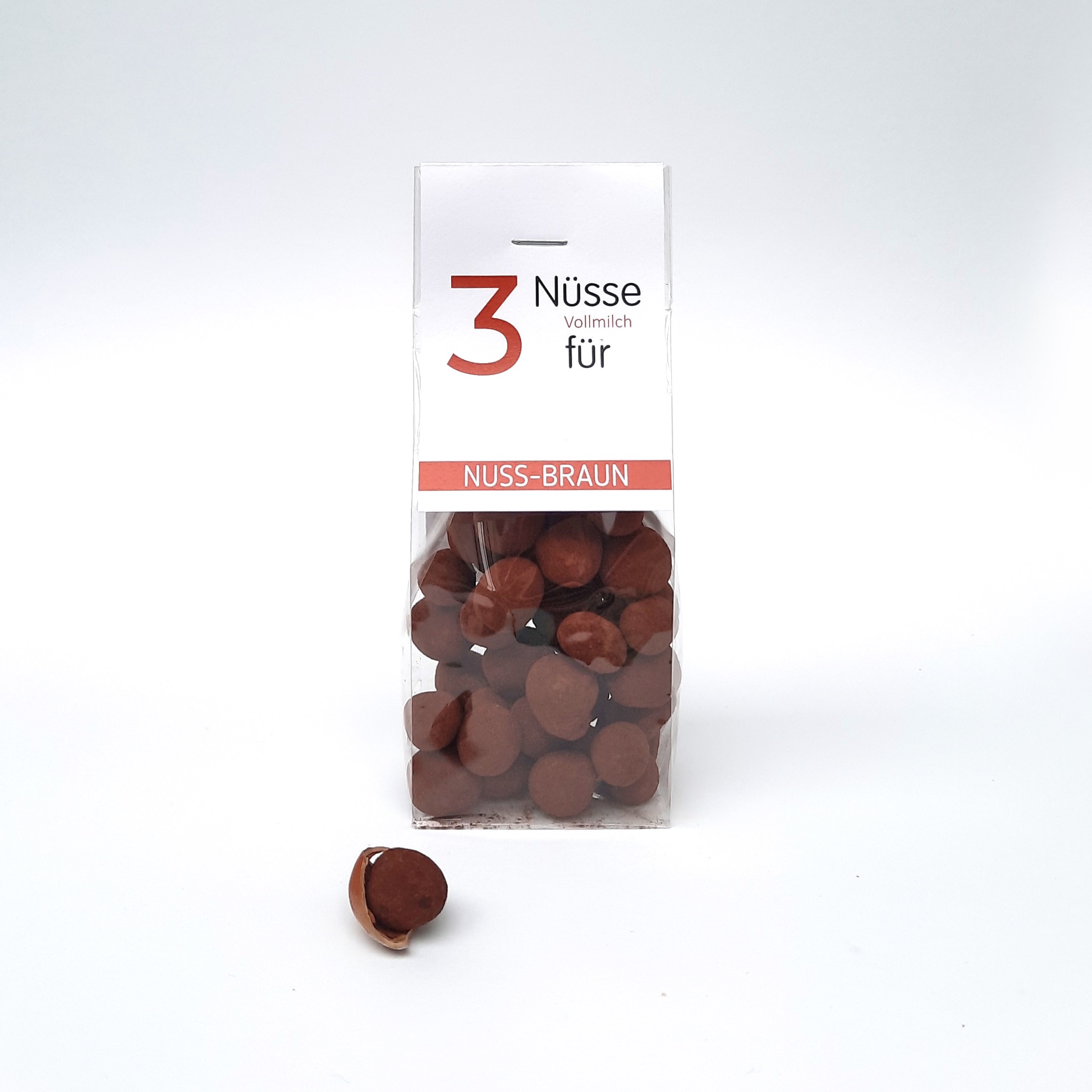 Zutaten: 50 % deutsche Haselnüsse geröstet, Vollmilchkuvertüre (Zucker, Kakaobutter, Vollmilchpulver, Kakaomasse, Emulator: Sojalecithin, Naturvanilleextrakt)