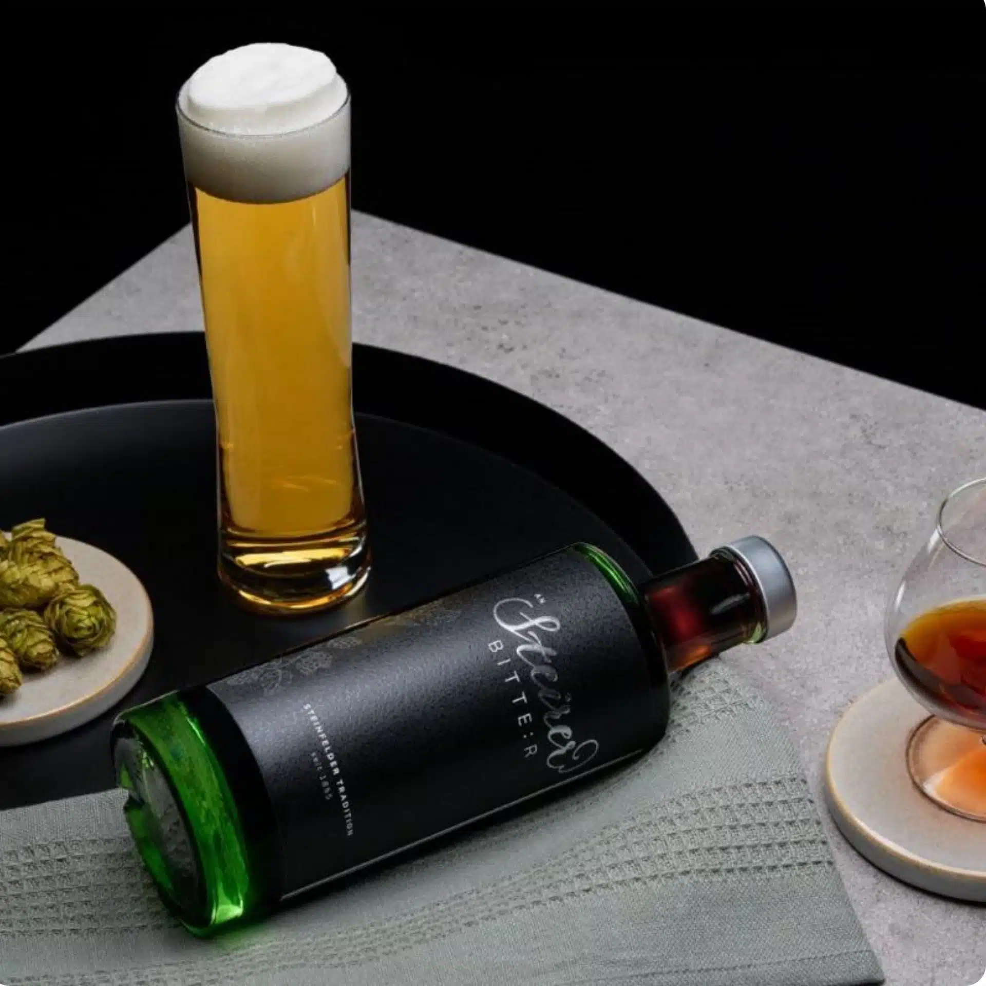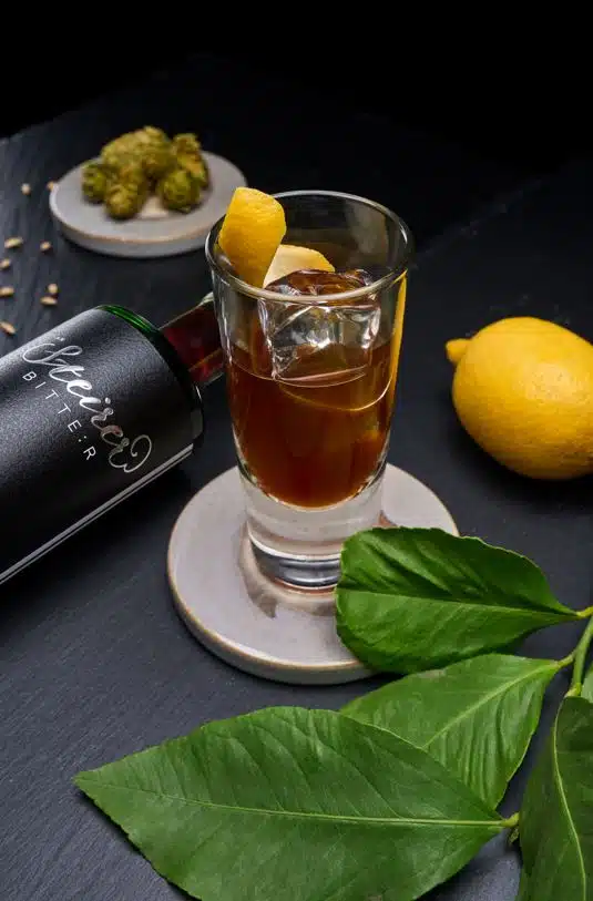 - Mit Leutschacher Hopfen und 14 Kräuterextrakten (von Enzianwurzel bis Nelken, Piment und Zimt)
