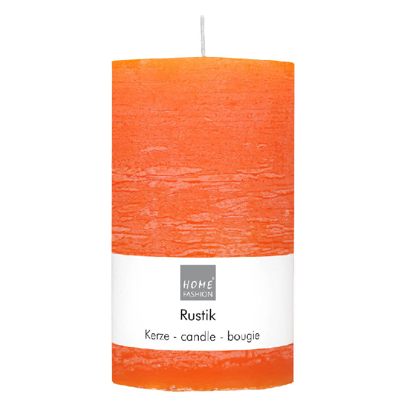 Die Stumpenkerze Rustik orange mit ihrem herbstlichen Orangeton und 55 Stunden Brenndauer ist die perfekte Ergänzung für stimmungsvolle Herbst- und Winterdekorationen.