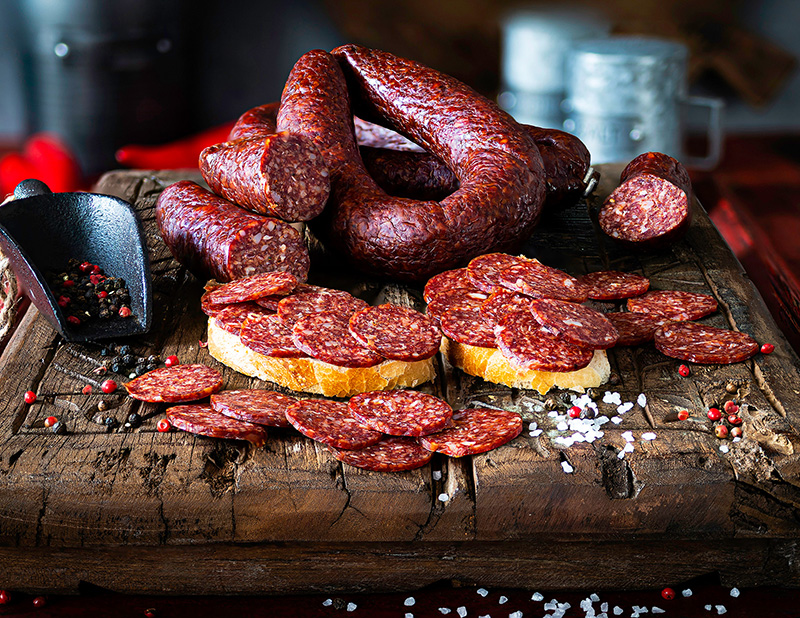 100% bestes Rindfleisch verarbeiten wir zu einer herzhaften Rinderknoblauchwurst nach einem original bosnischen Rezept. Die Zugabe von frischem Chili verleiht der Sudzuka Ihren peppigen Pfiff ohne zu brennen 😊 Der milde Buchenrauch verleiht der Sudzuka ihren typischen Geschmack. Lecker mit oder ohne Brot!! Rohwurst der Spitzenqualität.
