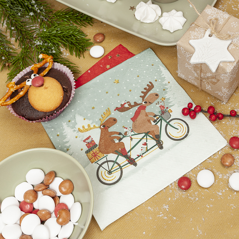 Zauberhafte Tandem Moose Servietten mit winterlichem Elch-Design, ideal für stilbewusste Dekorationen und festliche Anlässe.