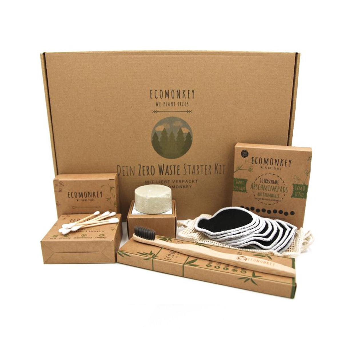 Wir von ECOMONKEY haben es uns zur Aufgabe gemacht, Nachhaltigkeit in Dein Badezimmer zu bringen. Aus diesem Grund erhältst du in unserem Onlineshop ausschließlich Produkte, die der Umwelt so wenig wie möglich schaden. Wir setzen auf nachhaltige Rohstoffe und versuchen so wenig Plastik wie möglich zu verwenden. Um den optimalen Start in diese ökologische Lebensweise zu finden, haben wir für dich ein einmaliges Zero Waste Starter Kit zusammengestellt, das sich auch hervorragend als Geschenk für deine Freunde oder Familie eignet.